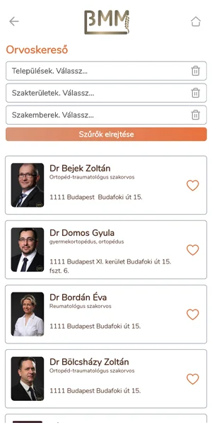 Az “Orvosaim” gombra kattintva a kedvenc orvosait, illetve azokat a szakembereket találja akiknél már korábban járt.